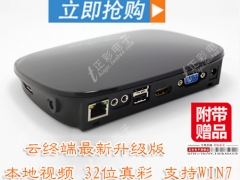 正彩云终端S885、S881、q600让电脑一台带多台!一台电脑,多人同时使用,相互独立,互不影响! 正彩云终端更多信息请访问网站:http://www.thinpc.cn/ 正彩云终端,电脑1变多,一台电脑加多台显示器,等于多台电脑,同时工作,互不影响!只需在1台普通电脑上添加2至多台显示器与云终端S885、S881、q600产品,即可将1台电脑轻松转换成2至多台电脑。多台电脑不用组网既成为一个局域网,每个云终端都拥有和单机相同的使用效果,获得与主机完全一样的windows运行环境,使用周边设备。电脑云终端的价格仅相当于传统个人计算机10%。 正彩云终端S885、S881、q600用户可以做什么? 1.多人可同时共享上网冲浪、办公 2.拥有和单机相同的使用效果 3.共享电脑外设,如打印机 正彩云终端S885、S881、q600产品优势: 一、大大降低了电脑购置费用 假设您需要增添几十台电脑,以利用pc机作为比较,用正彩云终端解决方案可以为客户节省90%的主机购置费。 二、安装简单、一按即用 只需在主机上把随机驱动安装好,主机和正彩云终端设备利用集线器(交换机)连接起来即可使用和操作。 三、易维护、免升级、便于管理 采用正彩云终端解决方案,每个云终端自身不需要升级,只需维护和升级服务器,就可以完成整个系统的维护、升级。 四、全功能、高安全 正彩云终端小巧精致,可以轻松地挂在显示器后面,别看它小, usb、以太网口、vga等接口一应俱全,每个云终端都可以获得和一台pc机完全一样的windows运行环境,本地断电也不会导致信息丢失,重新开机后自动恢复到关机前的状态。 五、无噪音,节省电能,减少占用空间,保护环境 为办公场所创造一个安静、舒适的环境,同时为您每日节省80%电力资源。